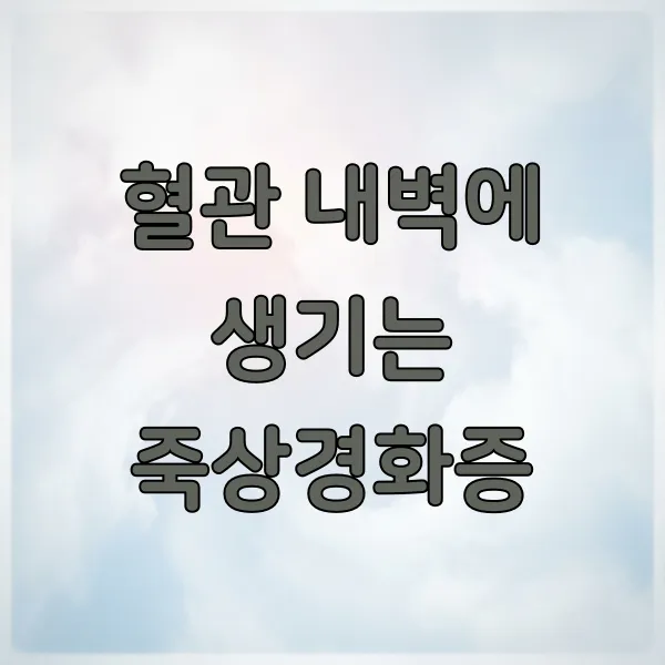죽상경화증 은 동맥경화의 한 형태로, 혈관 내벽에 콜레스테롤이나 지방 성분이 쌓여 죽종(플라크) 을 형성하는 질환이에요. 이 플라크는 혈관을 좁게 만들 뿐만 아니라, 불안정할 경우 갑자기 터져 나와 혈전을 형성하거나 혈관을 완전히 막을 수도 있답니다.