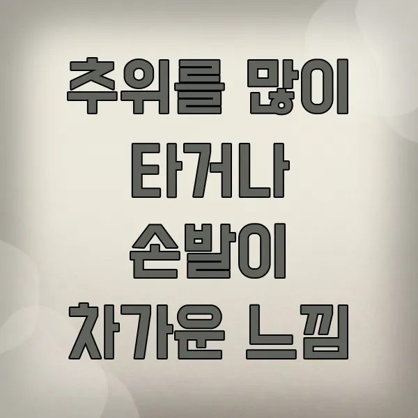특히 손발이 차가운 증상 이 두드러지게 나타날 수 있습니다. 장갑을 끼고 있어도 시린 느낌이 가시지 않거나, 따뜻한 물에 손을 담가도 금세 다시 차가워지는 경험을 하실 수 있을 거예요.