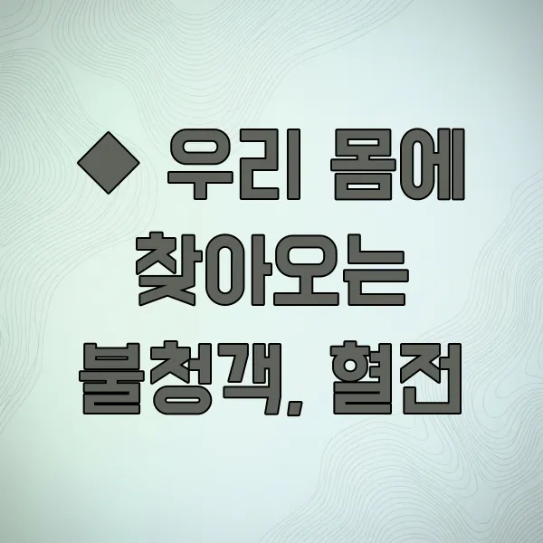 40대에 접어들면서부터는 우리 몸의 변화를 더욱 세심하게 살펴봐야 해요. 예전 같지 않게 쉽게 피로를 느끼거나, 이런저런 통증이 자주 찾아올 수 있거든요. 이때 혈전 증상을 의심 하고 적극적으로 대처하는 것이 앞으로의 건강을 지키는 중요한 열쇠가 될 거예요. 40대부터는 혈관 건강을 위한 투자와 노력이 더욱 필요하다고 생각해요. 우리 몸의 신호를 잘 듣고 관리해야죠.